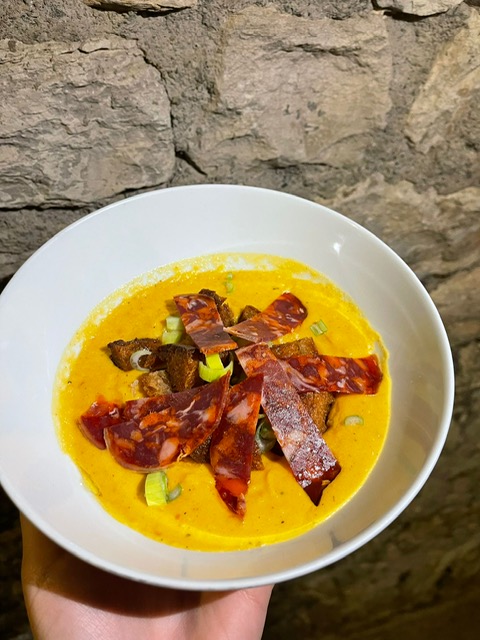 Chistora ( chorizo de cochon Duroc ), confit d’oignon